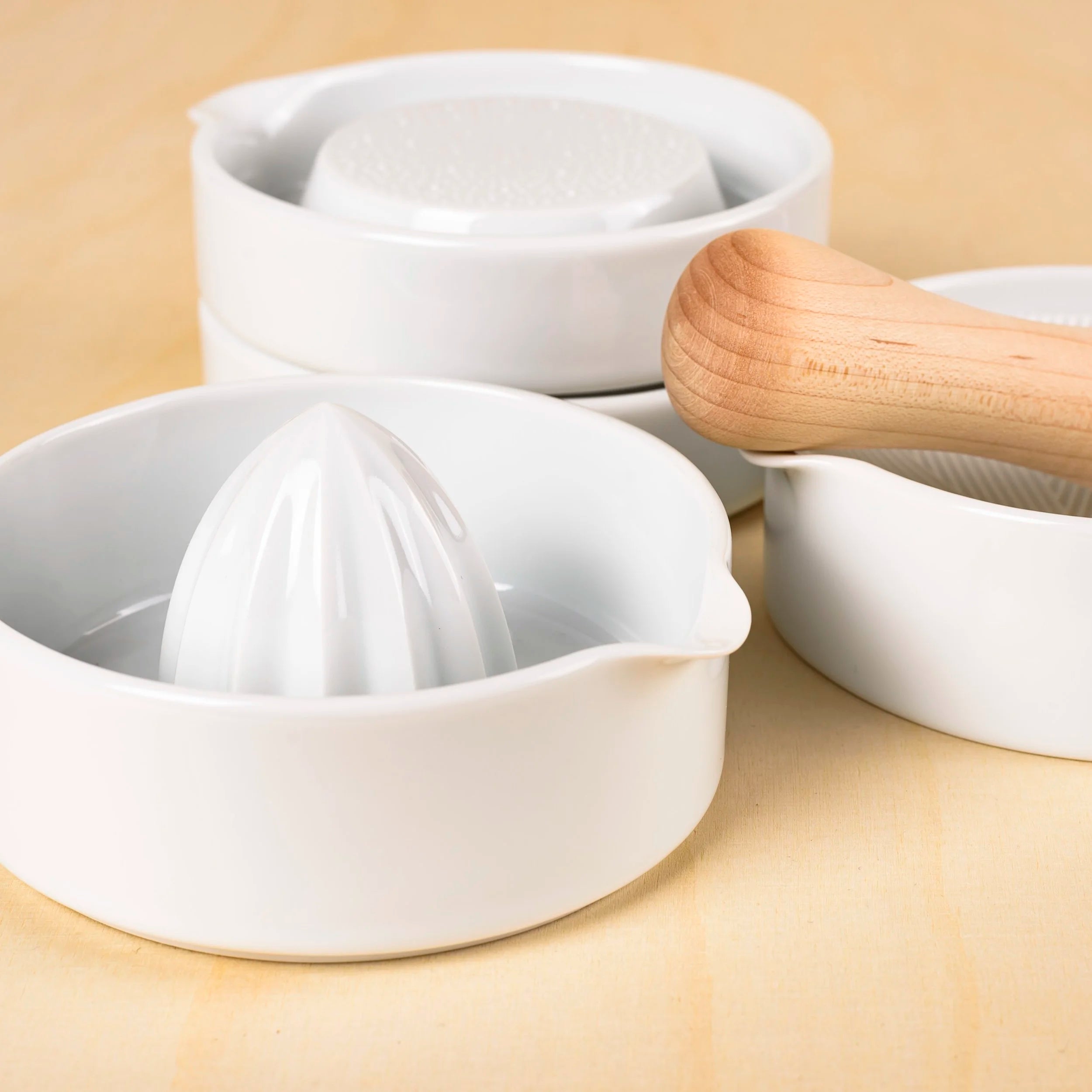 Un récipient simple et élégant, muni d'un bec verseur, idéal pour les citrons verts, les citrons jaunes, les pamplemousses, etc. La collection Sitaku propose de nombreux ustensiles de cuisine au design modulaire et minimaliste. Empilables, ils permettent un gain de place et embellissent la table. Dans la même gamme : râpe à gingembre et mortier .