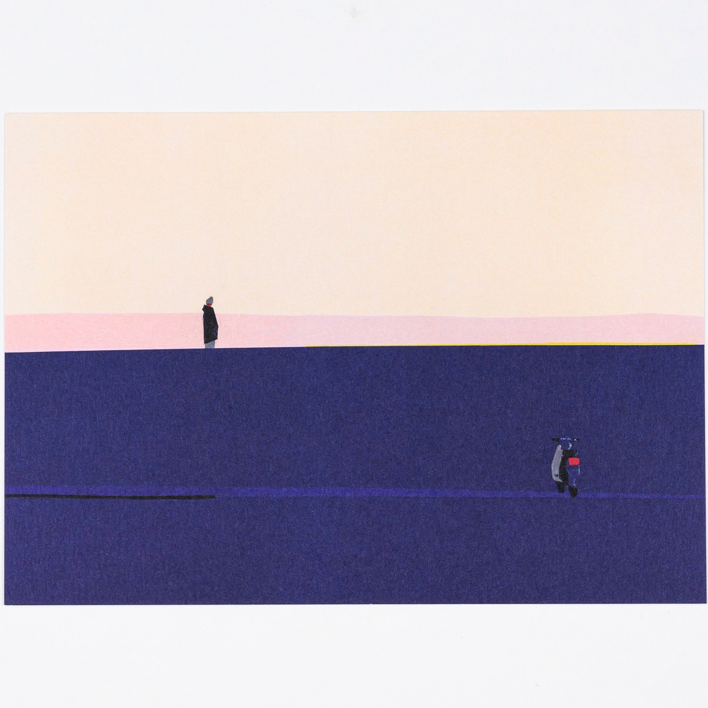 L'artiste japonais Taku Bannai crée ses images paisibles et atmosphériques à partir de découpages de papier coloré, qu'il agence en figures et scènes simples sur de grandes surfaces vierges. Il en résulte un mélange unique de représentations minimalistes et sereines de la vie quotidienne.