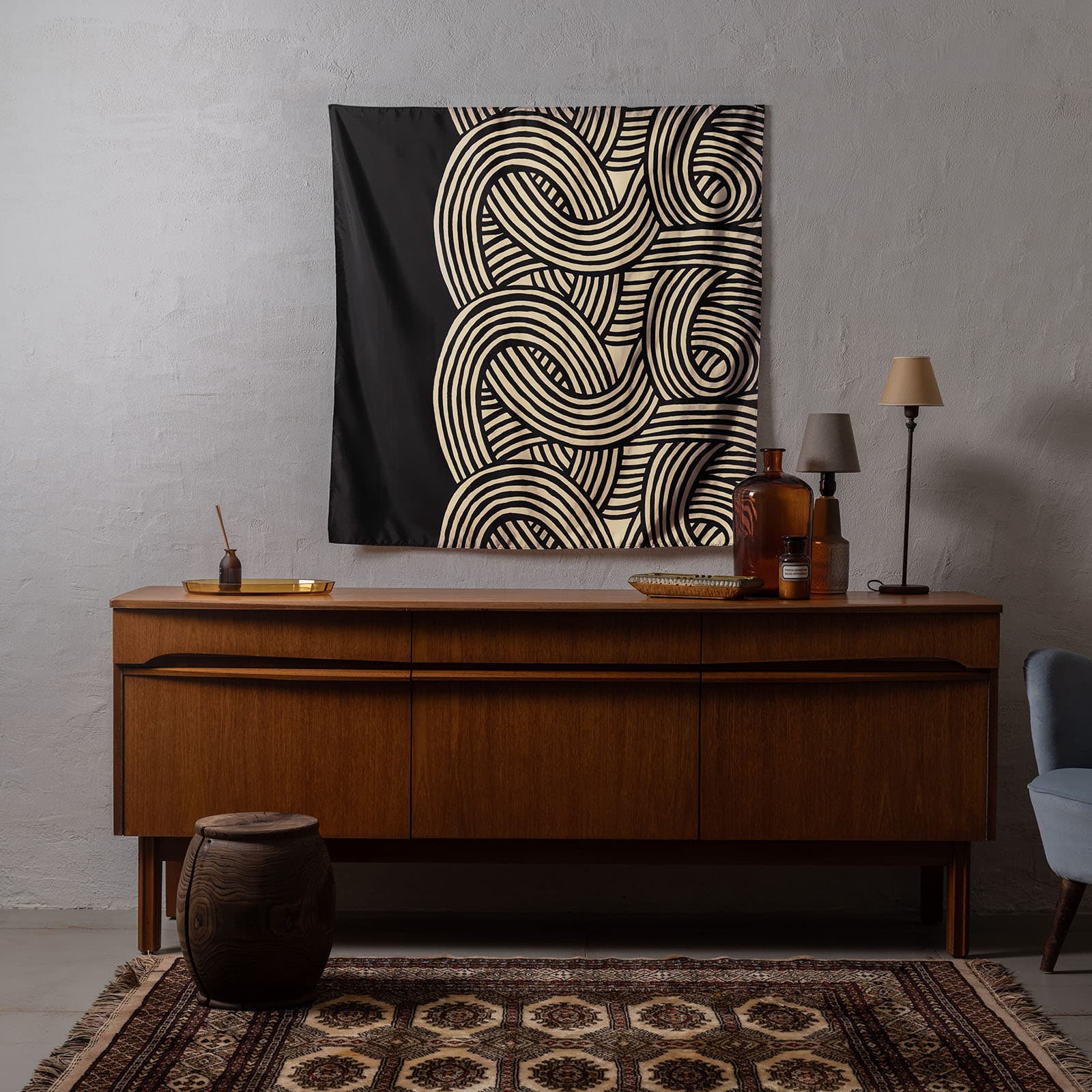 Furoshiki sind traditionelle, japanische, quadratische Baumwolltücher, die für das Einpacken und Tragen von verschiedensten Dingen verwendet werden. Furoshiki in Grösse L eignen sich zum Binden von Taschen, zum Einwickeln von Kleidung oder zum Verpacken zweier Weinflaschen. Das Muster ist von einem Knoten inspiriert: die sich überlappenden Linien symbolisieren dauerhafte Bindungen zwischen Menschen.